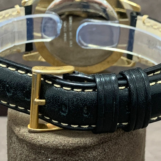 Este reloj es un modelo suizo de cuarzo de calendario completo con fase lunar, típico de finales de los años 80 y 90, producido por talleres suizos que utilizaban movimientos ETA modificados. Aunque no pertenece a una marca de alta relojería reconocida, su construcción y estética lo colocan en una categoría media-alta, muy valorada por coleccionistas de relojería clásica. La ausencia del nombre de la marca en la esfera podría indicar que fue fabricado para un mercado específico donde no se requería la marca en la esfera.